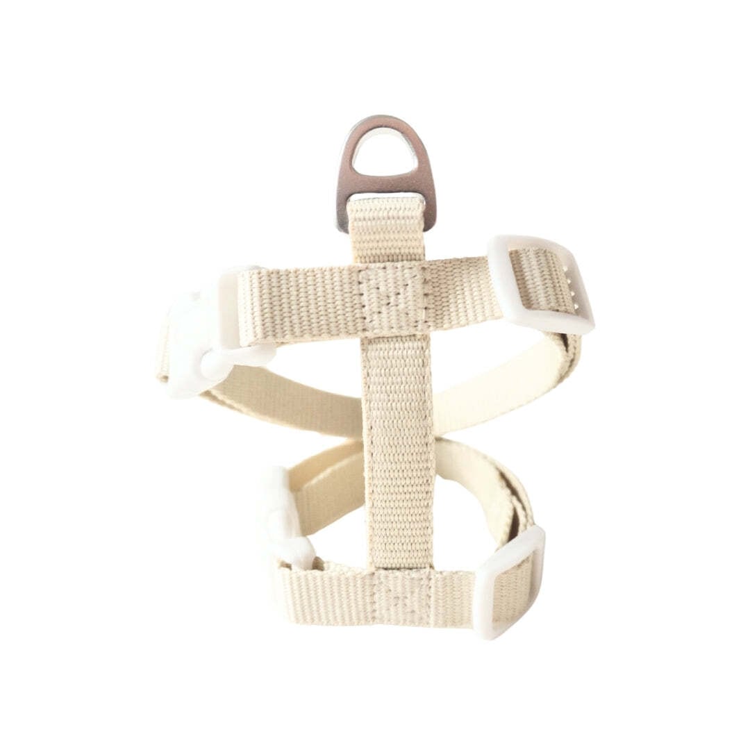 優しい肌触りのポリエステル素材を使用し、長時間の使用でもストレスなくフィット。Aカン部分は引っ張りにも強い強化縫製で、活発なワンちゃんにも安心です。バックルは透明感のある軽量タイプを採用し、頭を通さず簡単に装着できるスマート構造。デザイン性と操作性を兼ね備えた一着です。
