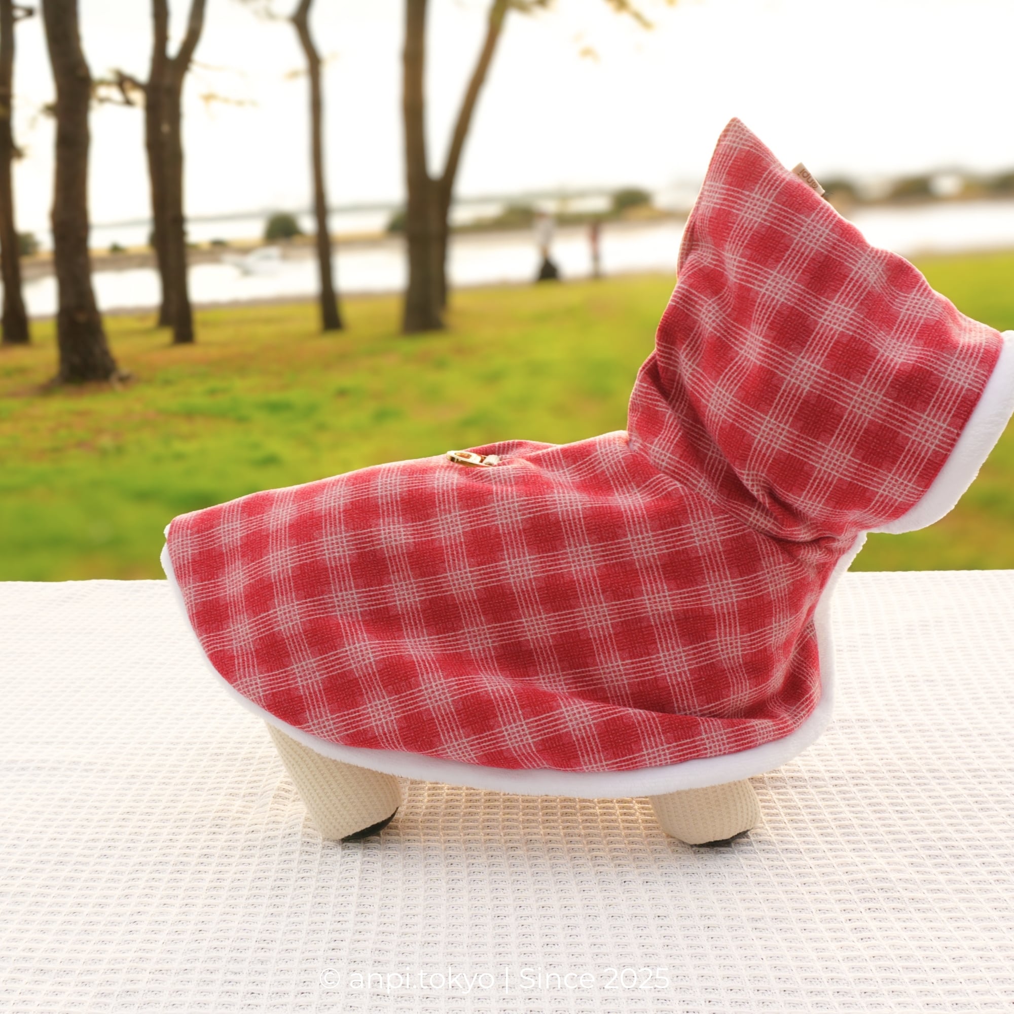 重ね着が苦手な子のための、軽くて安定するフード付きポンチョです。