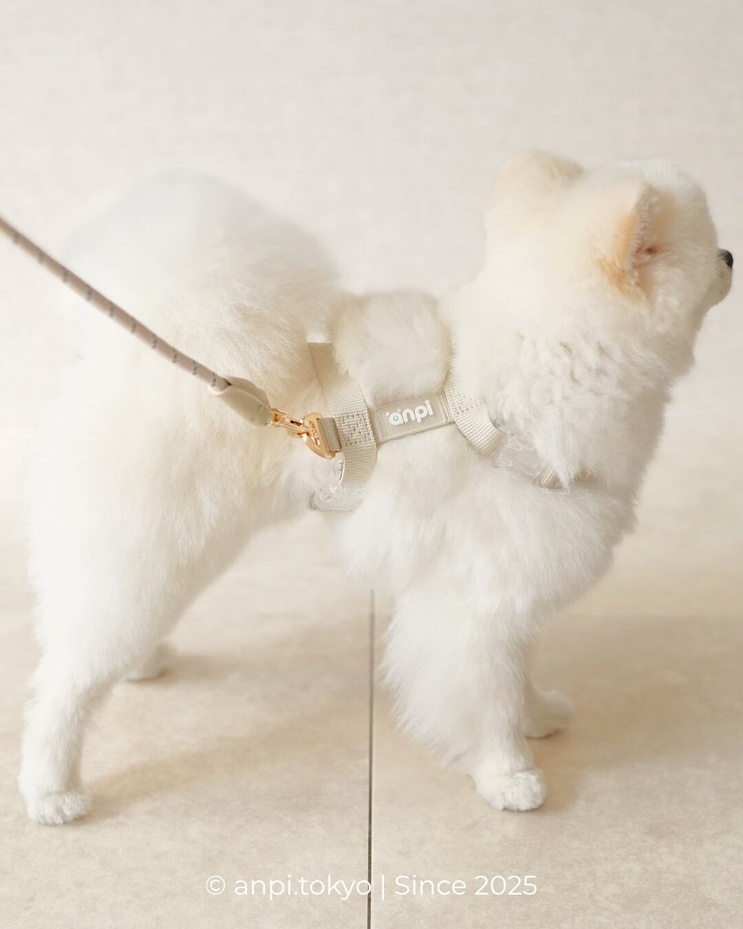 このハーネスは、愛犬の快適さと安全性を追求した設計が特徴です。柔らかなポリエステル素材が体に優しくフィットし、長時間のお散歩でもストレスフリー。さらに、引っ張り癖のある愛犬にも対応できるよう、Aカン周辺を強化縫製した耐久性の高いデザインです。